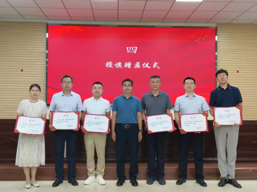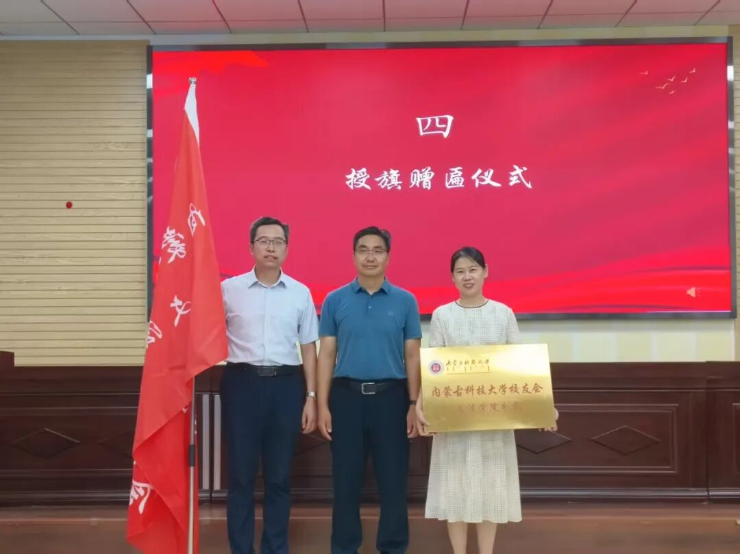 校党委委员、副校长赵永旺向新成立的太阳集团城娱8722校友分会授旗、赠匾,并为新当选的会长、常务副会长、副会长颁发聘书。校友工作办公室副主任、校友会秘书长翟耀飞为新当选的秘书长、副秘书长颁发聘书。