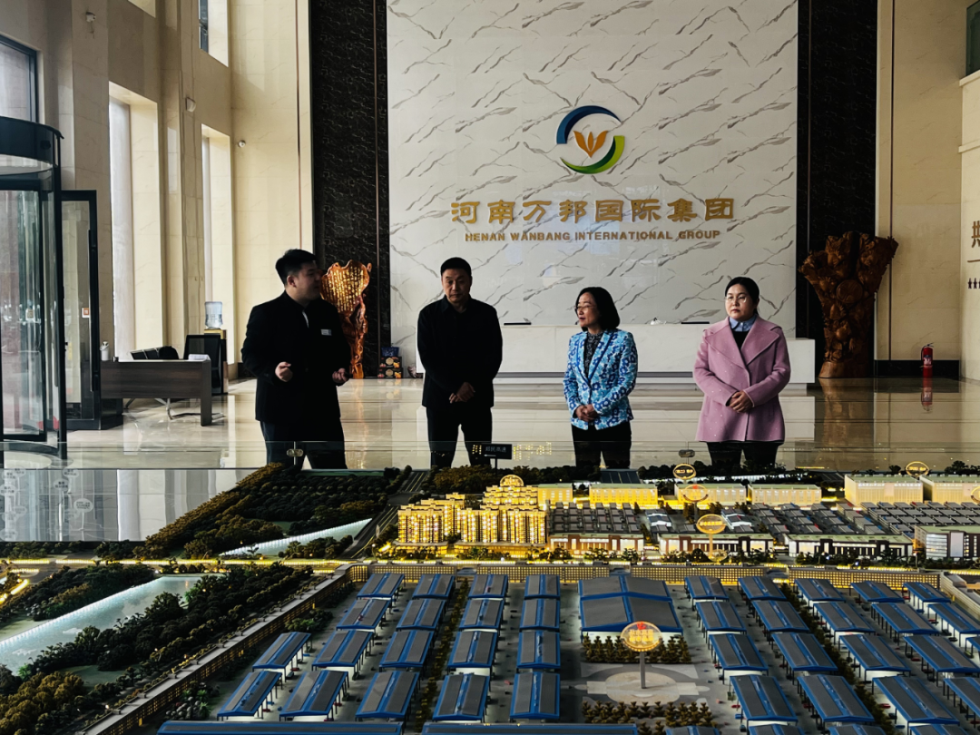 在郑州万邦集团,孙静一行了解企业生产经营情况,调研公司人才需求状况,与郑州万邦集团副总刘汝力进行深入交流,洽谈校企合作机制,拓展就业岗位。