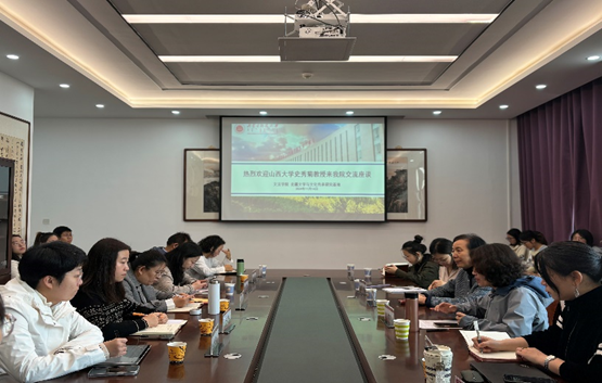 应北疆文学与文化传承研究基地邀请,山西大学文学院教授、博士生导师史秀菊于11月14日上午来我院交流座谈。座谈会由学院副院长王继霞教授主持。王继霞副院长首先代表学院对史秀菊教授的到来表示欢迎,并介绍了与会人员和我院的基本情况。随后,史秀菊教授与参会老师围绕科研项目申报、一流本科课程建设等问题进行了深入交流,现场气氛活跃热烈。
