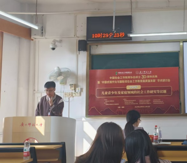 为深入学习贯彻习近平总书记关于社会工作的重要论述,推进中国式现代化背景下新阶段社会工作教育的高质量发展,2024年11月9至10日,由中国社会工作教育协会主办、广西师范大学政治与公共管理学院承办的中国社会工作教育协会成立30周年庆典暨“中国式现代化与新阶段社会工作教育高质量发展”学术研讨会于广西桂林顺利召开。