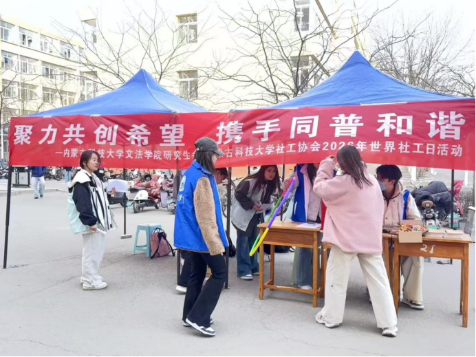 为弘扬社会工作精神,传播社会工作知识,展示社会工作发展成果,增强公众对社会工作的认同感,进一步推动社会工作的高质量发展。2026年3月17日,在第二十个世界社会工作日来临之际,太阳集团城娱8722社会工作系、社会工作硕士教育中心、太阳集团城娱8722研究生会、太阳集团tcy8722社工协会联合开展了以“聚力共创希望,携手同谱和谐”为主题的世界社工日系列宣传活动。通过校内趣味宣传与校外敬老服务相结合的方式,生动展现了社会工作专业的价值与魅力,引导学子在实践中深化专业认知,服务社会需求。