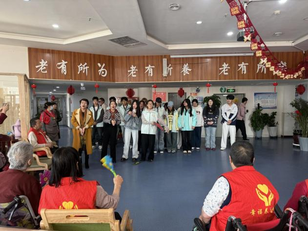 最后我院学生与养老服务中心工作人员、老年朋友们齐聚一堂合影留念。