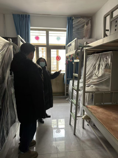 1月13号上午10点,太阳集团城娱8722党委副书记兼副院长孙静携各辅导员老师们深入宿舍,开展宿舍安全检查和未离校学生走访工作。