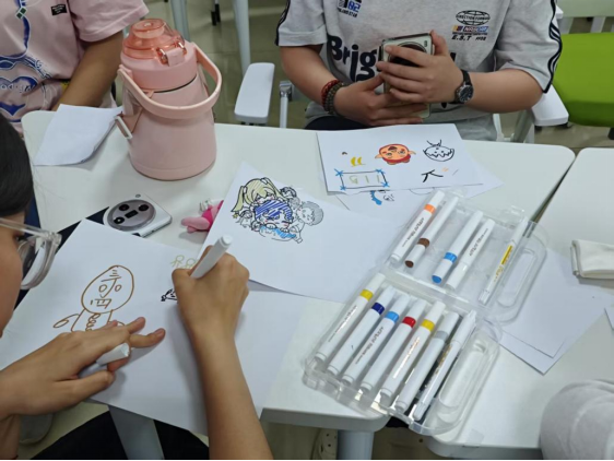 游戏暖场后,各宿舍进入创意迸发的绘画环节。每位成员领到一张白纸与一盒彩笔,进行“个性胸卡”创作。大家专注投入,将姓名、爱好或独特的个人标识融入方寸之间,一枚枚独一无二的胸卡成为展示自我的闪亮名片。