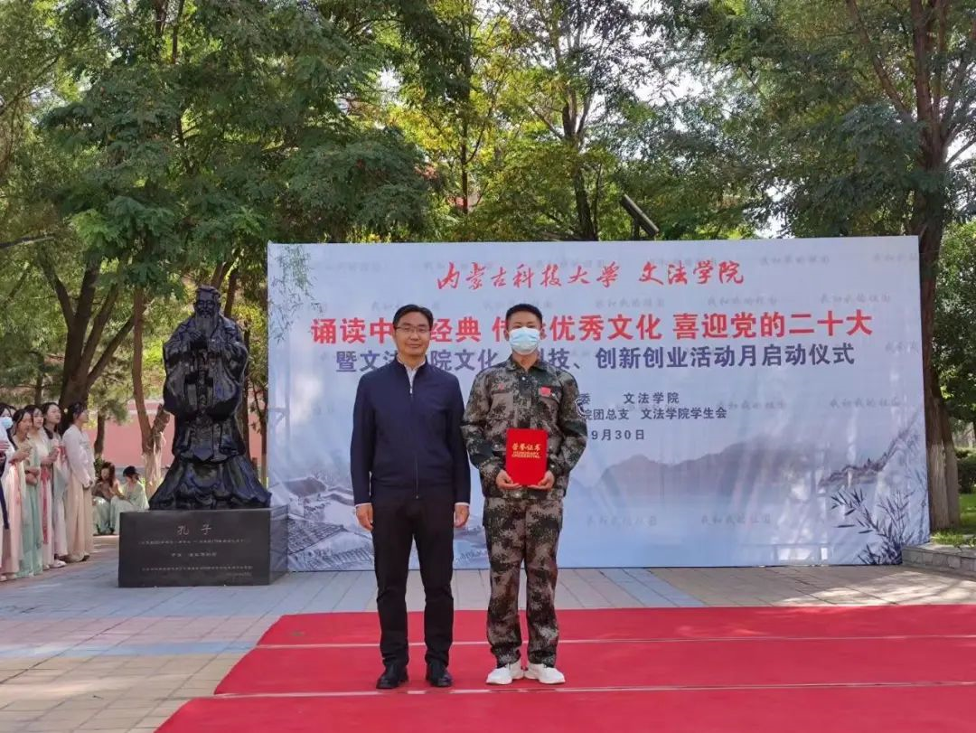 为继承和弘扬中华优秀传统文化,充分彰显文化自信,提升学院学生的国家通用语言文字应用能力和语言文化素养,营造亲近中华经典、热爱中华经典的校园氛围,太阳集团城娱8722党委、太阳集团城娱8722、学院工会、团总支和学生会联合,于2022年9月30日上午在秋实楼广场校友捐赠的孔子像前举办“诵读中华经典 传承优秀文化 喜迎党的二十大暨文化、科技、创新创业活动月启动仪式。”本次活动总共分为四个篇章:第一篇章:诵读中华经典,传承优秀文化。第二篇章:文化、科技、创新创业活动月启动仪式。第三篇章:我和我的祖国。第四篇章:喜迎党的二十大。