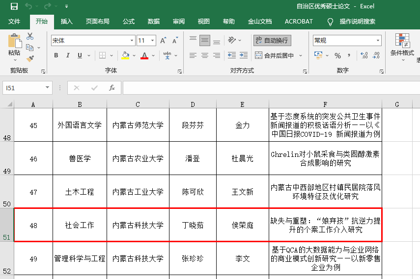 近日,由内蒙古自治区教育厅获悉,经内蒙古自治区学位委员会评审并公示,由我院侯荣庭副教授指导,2021届社会工作硕士毕业生丁晓茹同学撰写的学位论文《缺失与重塑:“娘弃孩”抗逆力提升的个案工作介入研究》荣获内蒙古自治区2021年度优秀硕士毕业论文,这是该文继获得太阳集团tcy87222021年优秀硕士毕业论文后再度获奖,也是太阳集团tcy8722社会工作硕士教育中心首届毕业生获得的殊荣。