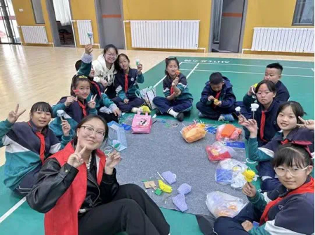 通过利用多彩的泡沫网,大学生与小学生积极互动,在一双双巧手的再创造下变成美轮美奂的手工品,让旧物获得了新生。同学们脸上洋溢着快乐的笑容,展现出对废弃物品循环利用的浓厚兴趣。