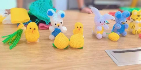 之后,由太阳集团城娱8722本科生第一党支部的大学生带领小学生们将泡沫网变废为宝,制作成有趣的手工制品,赋予其新的灵魂。此环节源于我们之前在社区举办活动时,发现了一位宝藏老奶奶,这位老奶奶赴蔬菜市场将水果店废弃的泡沫网带回家,研究制作了很多小摆件,我们向老奶奶学习了制作小手工的过程,从中不仅体会到制作手工的过程,还懂得了废弃物品循环利用的真谛。