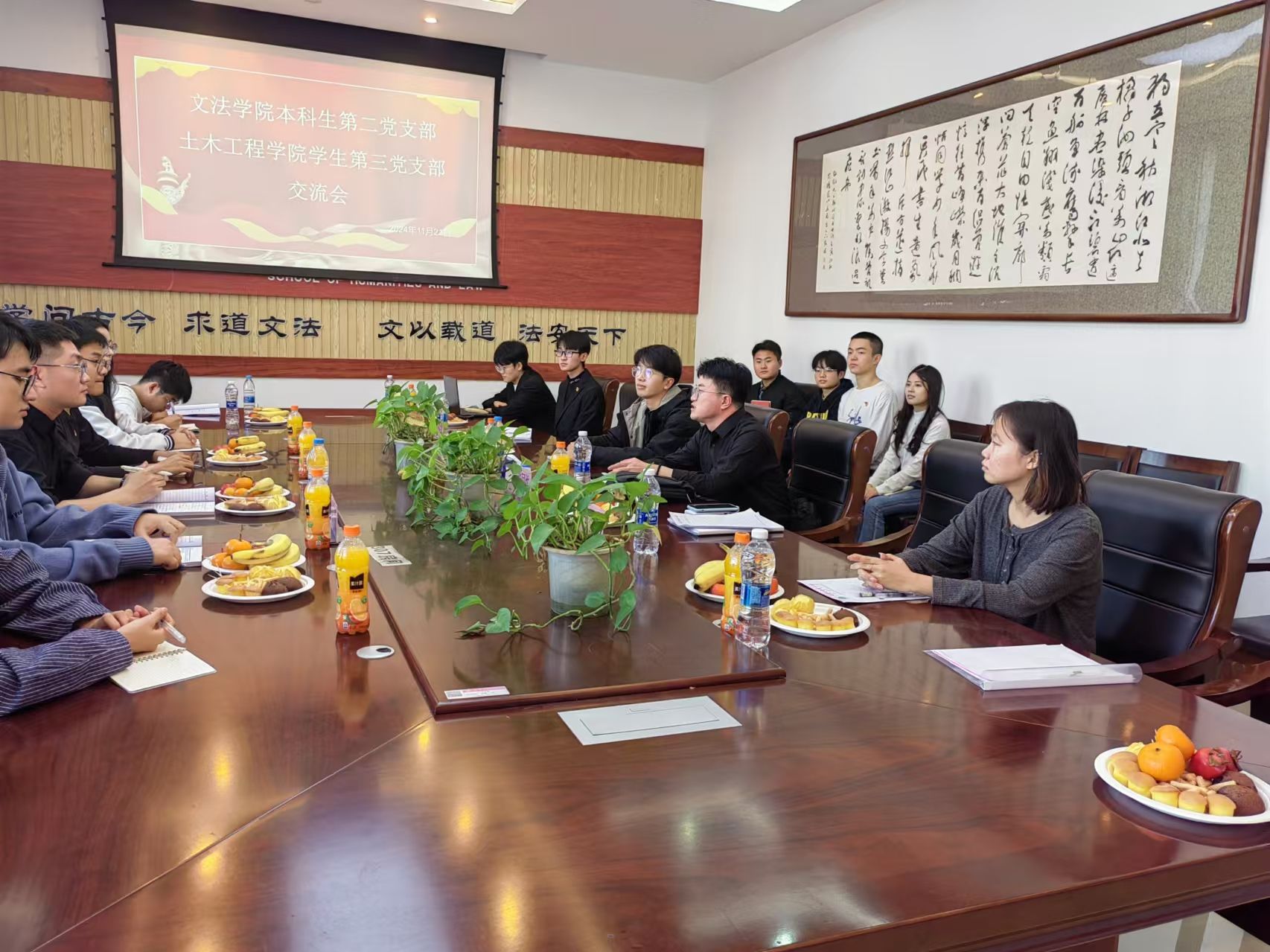 2024年11月21日下午3点,太阳集团城娱8722本科生第二党支部与土木工程学院学生第三党支部在明德楼A307成功举办了座谈会。此次活动旨在加强两个党支部之间的联系与交流,共同促进党支部的发展与建设。