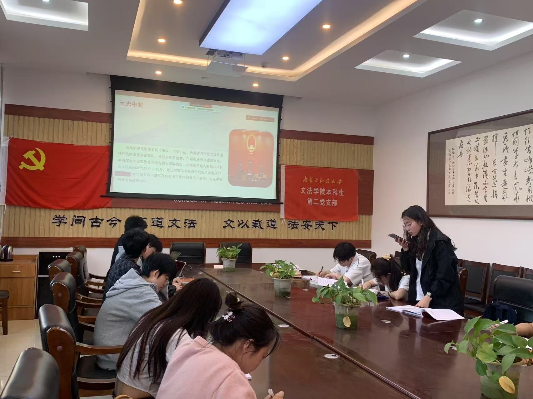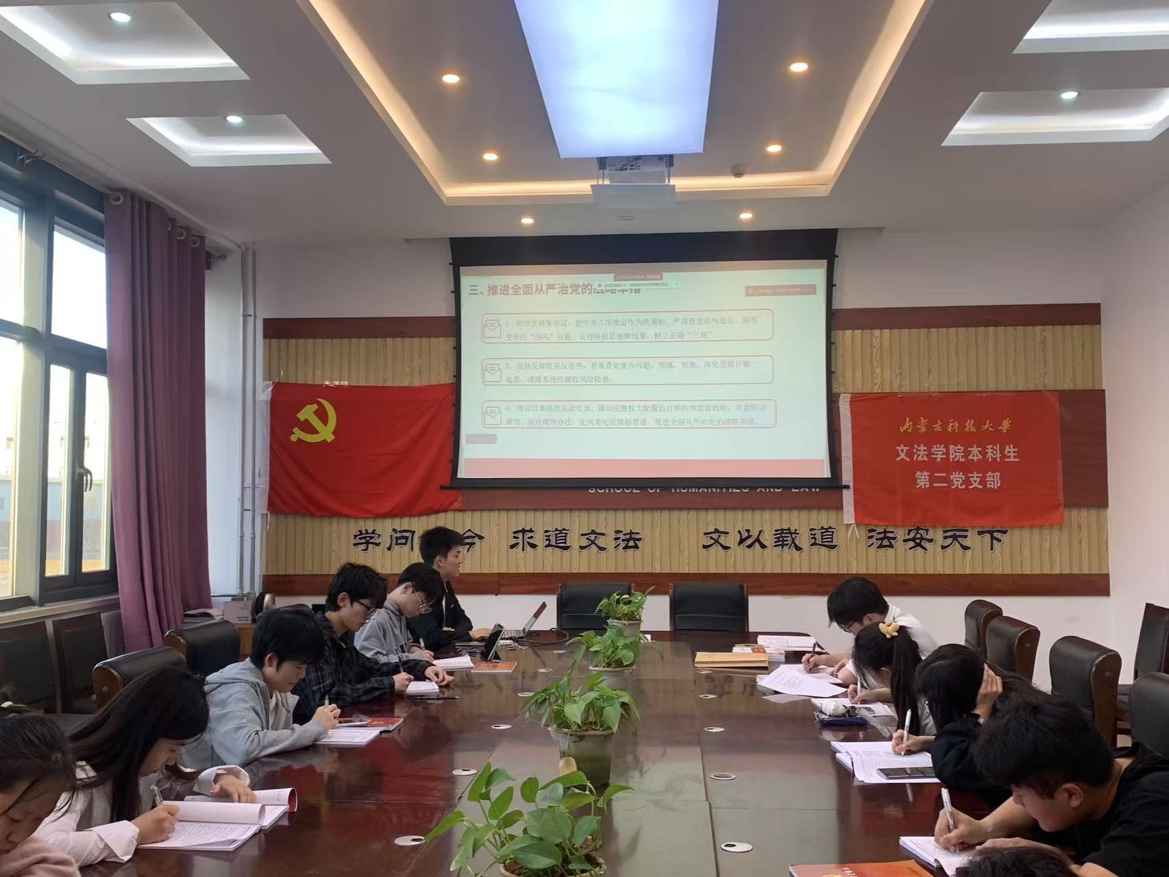 活动伊始,陶文轩同志详细介绍本次理论学习活动框架目录。活动中,陶文轩同志紧扣学习主题,带领全体党员逐一对各板块内容进行深入学习,着重围绕习近平总书记关于全面从严治党的重要论述展开系统阐释。此次学习还结合内蒙古本地反腐败典型案例,生动展现全面从严治党的重要意义与实践成效。同时,全体党员集中观看了警示教育专题视频,进一步强化纪法意识,筑牢防腐思想防线。