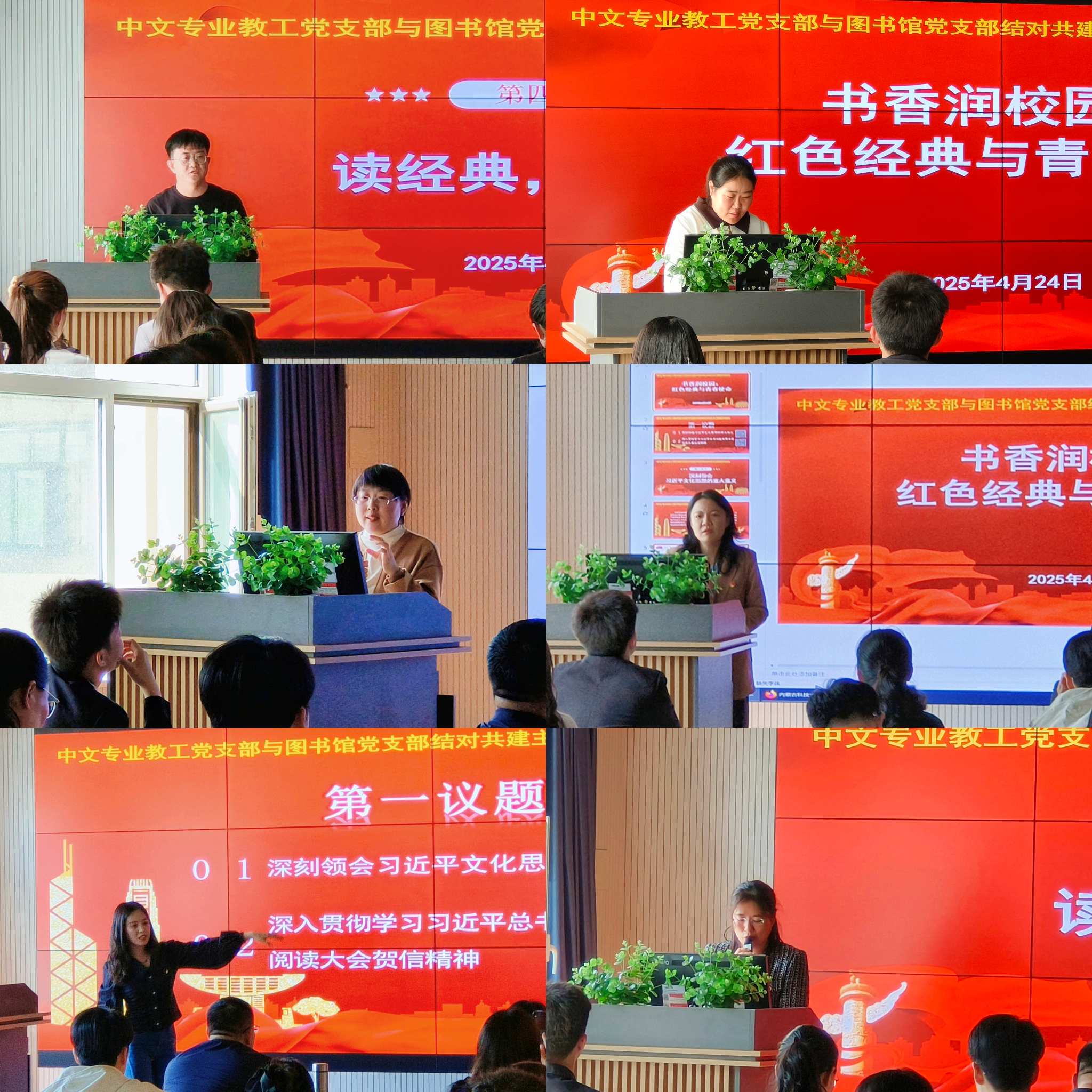 2025年4月23至24日,太阳集团城娱8722本科生第二党支部、中文专业教工党支部与图书馆党支部在图书馆联合开展“党建引领品书香 红色经典润校园”主题党日活动,旨在以党建促交流,营造书香氛围,融入红色文化。