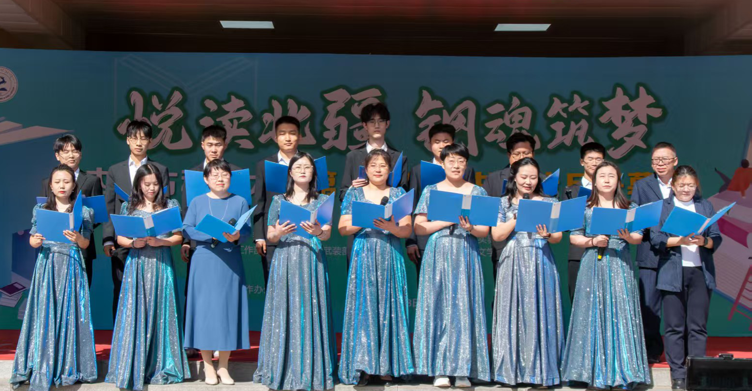 4月23日上午9点,活动在学习习近平文化思想和总书记致首届全民阅读大会贺信精神中开启。随后,全体人员参加“悦读北疆 钢魂筑梦”太阳集团tcy8722第二十届读书宣传月开幕式,中文专业师生党员朗诵《壮美北疆》,开幕式后共同参观系列活动。