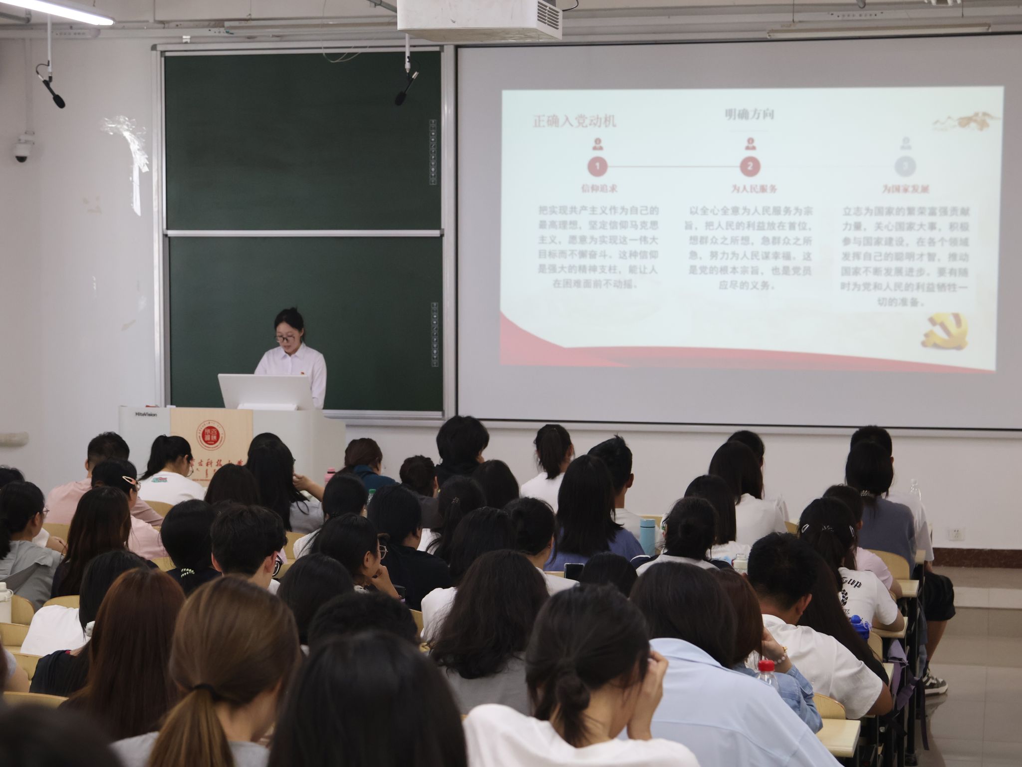 为帮助2025级新生扣好“政治成长第一粒扣子”,快速明晰入党方向、深化对党的认知,引导青年学子树立正确的理想信念。2025年9月12日下午3点,太阳集团城娱8722本科生第二党支部于逸夫楼G403,面向全体25级汉语言文学、秘书学专业新生举办入党宣讲会,为新生搭建起了解、靠近党组织的桥梁。