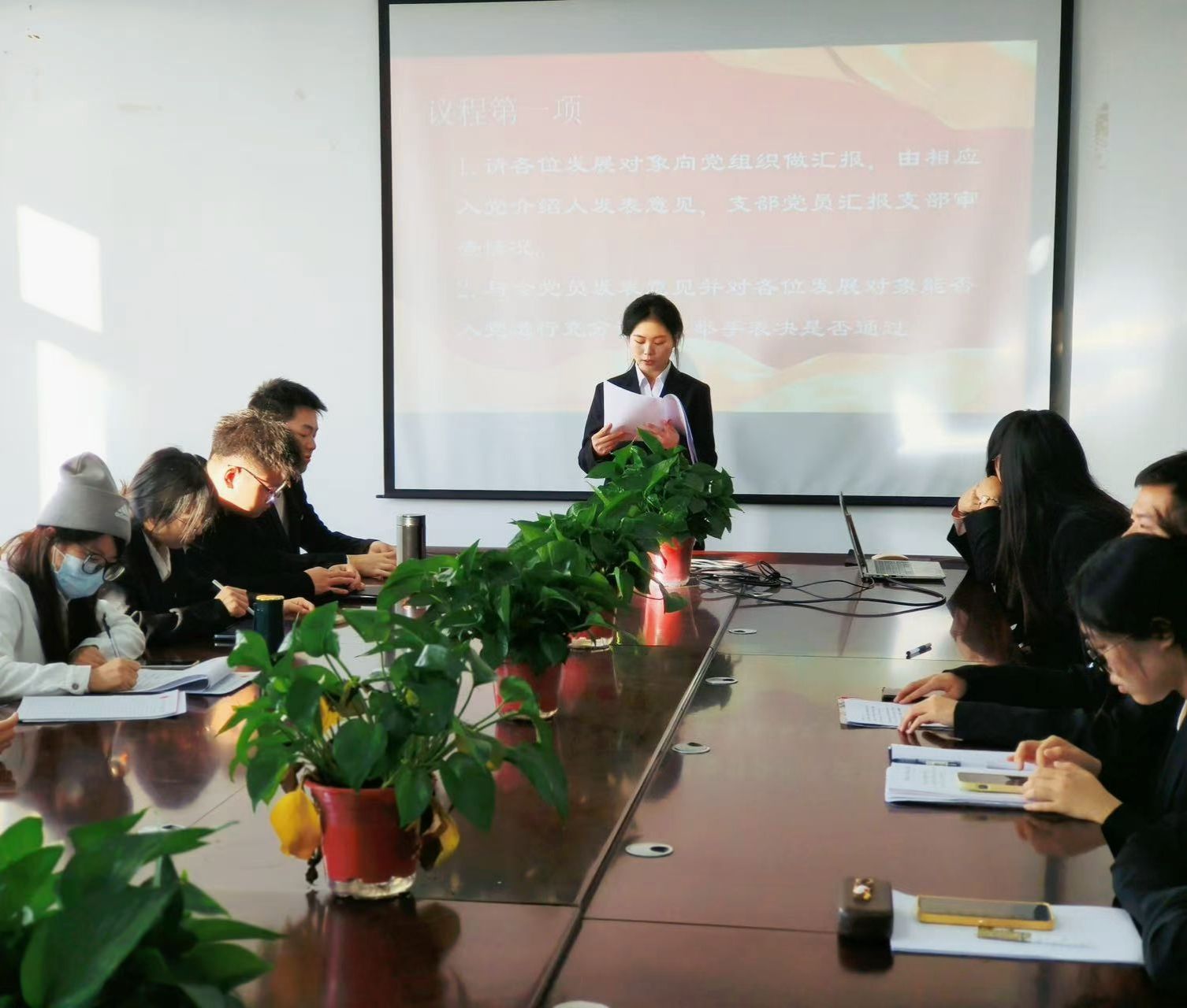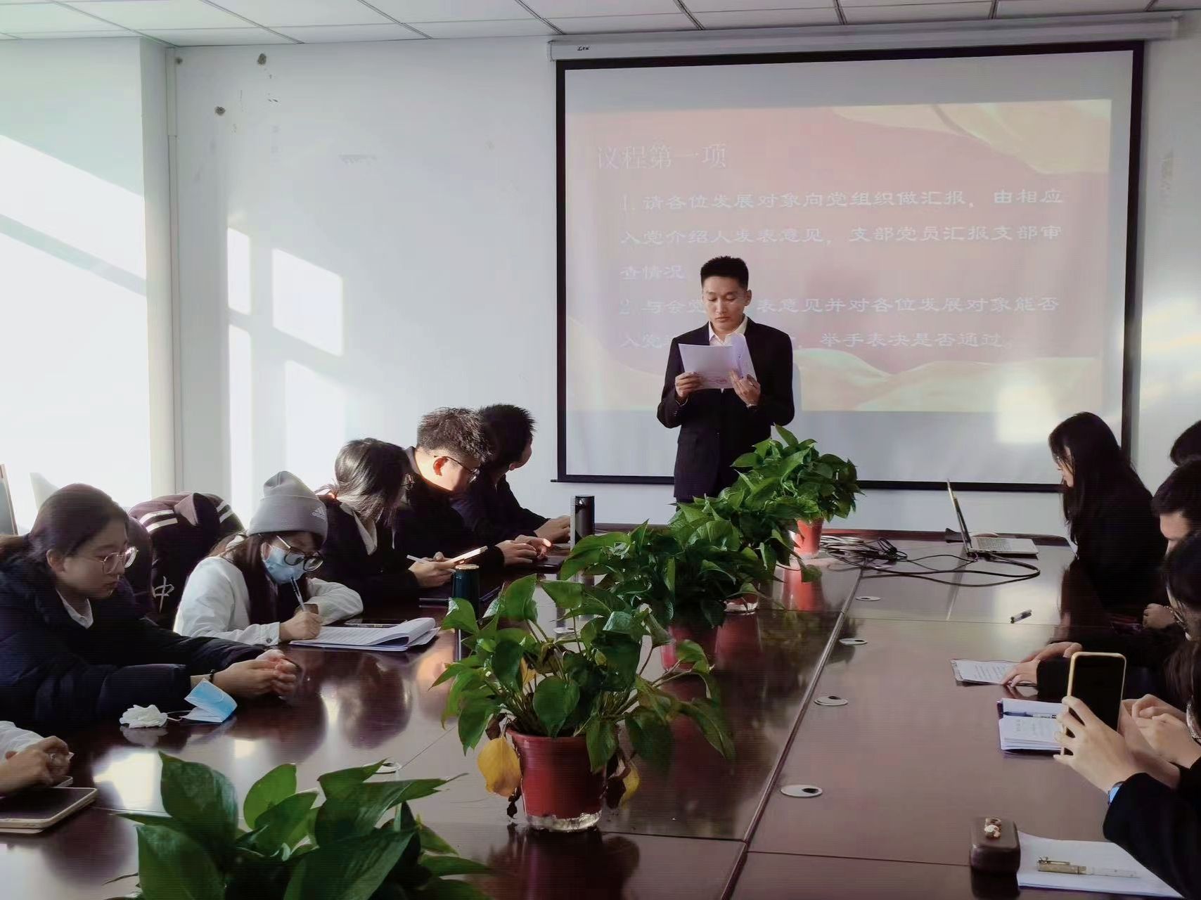 2025年12月1上午9点,太阳集团城娱8722本科生第二党支部在文华楼B1503召开预备党员接收大会。