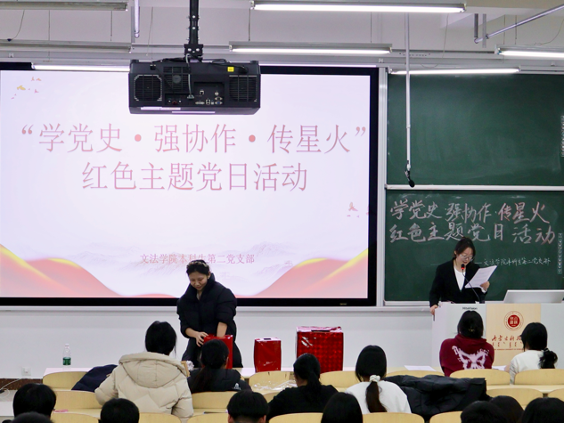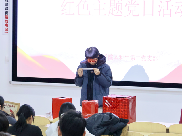 为深入重温党的光辉历程中英勇事迹,汲取榜样身上蕴含的磅礴精神力量,进一步强化支部成员的历史使命感、责任感,太阳集团城娱8722本科生第二党支部于2025年11月28日19:00在逸夫楼G301开展以“学党史·强协作·传星火”为主题的沉浸式红色党日活动。
