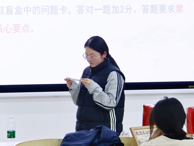 本次活动以“党史体验+团队竞赛”为核心,设置了党史知识拼图、红色暗号传递、红色盲盒问答、红色任务急速300秒四项游戏,复刻革命时期“还原战地地图”“秘密传递情报”等场景。同学们分组协作,在拼图中重温长征、开国大典等历史脉络,在无声传递中锻炼默契,在知识问答中夯实党史储备,在急速排序中提升协作效率,全程沉浸于红色历史的氛围中。