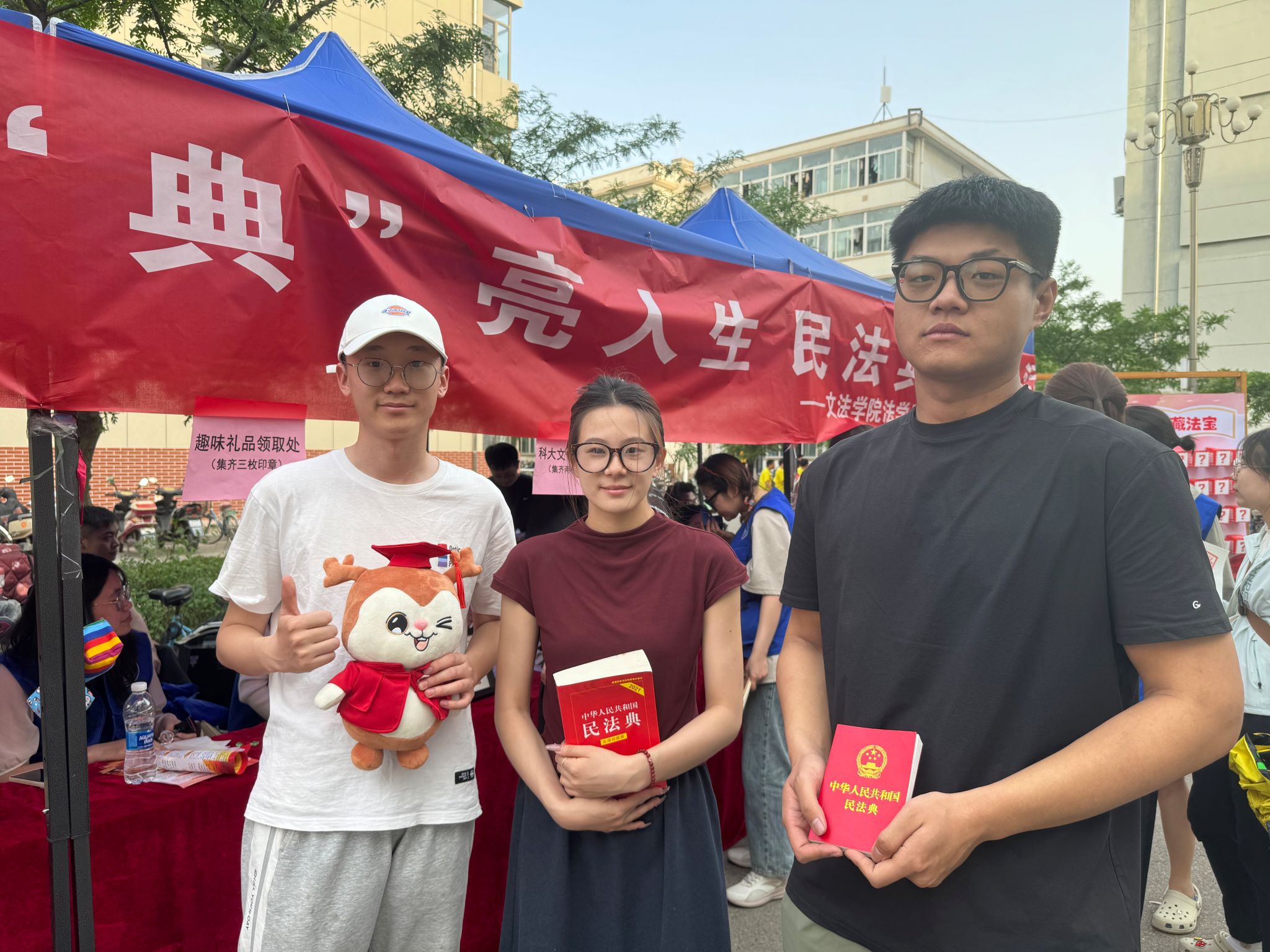 2025年5月是第五个“民法典宣传月”。为深入学习领会习近平法治思想,贯彻习近平总书记关于贯彻实施民法典的重要讲话精神,推动全校学生学习宣传民法典,厚植民法精神。2025年5月20日,太阳集团城娱8722法学系教工党支部联合法学研究生党支部,于颐园前广场举办“与法相伴·“典”亮人生”民法典宣传活动。