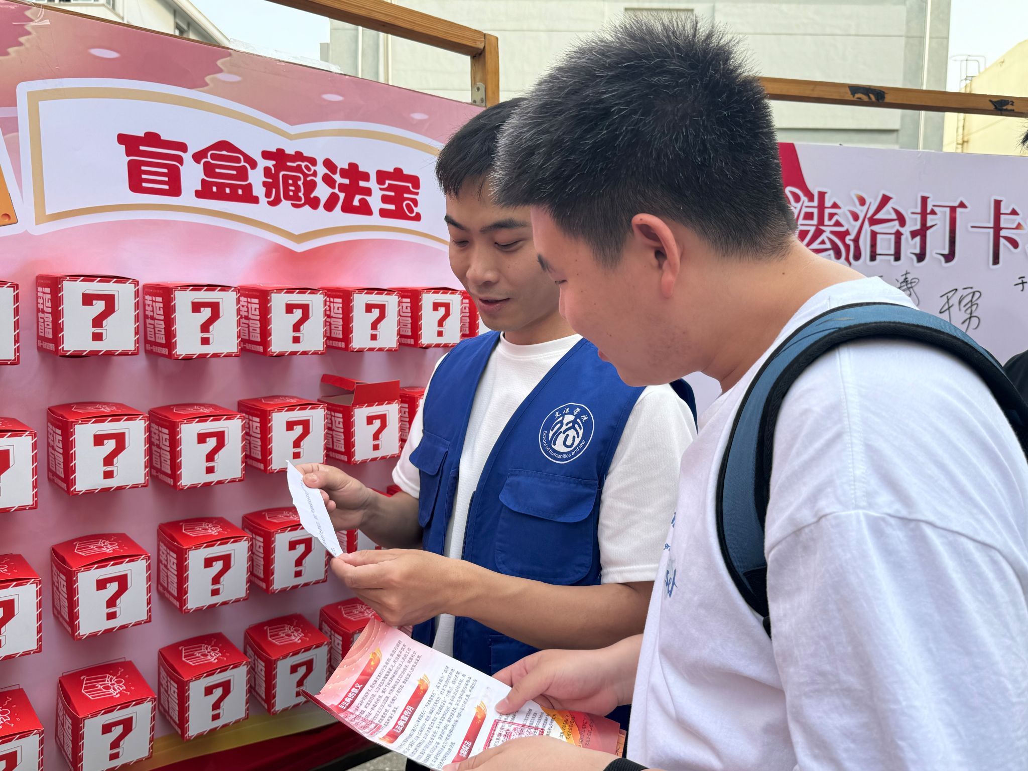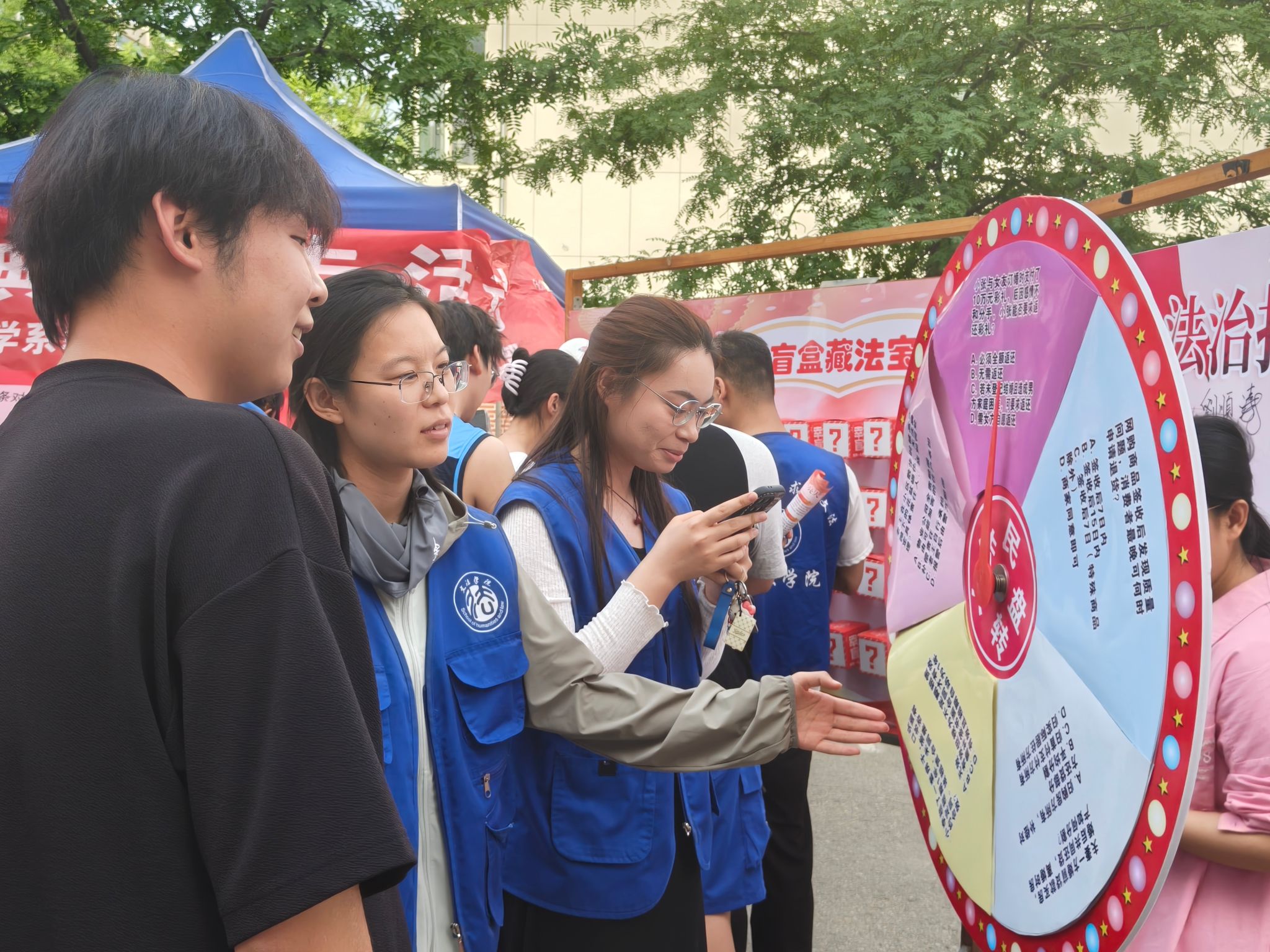 本次活动通过分发宣传页、“漫”说民法典、“盲盒藏法宝”、“法条对对碰”、“民法大转盘”等环节进行多元化普法,让广大师生深度体验“沉浸式”和“互动式”学法用法;同时还设置法律咨询台,结合典型案例用通俗易懂的语言为同学们解决现实生活中遇到的法律问题。