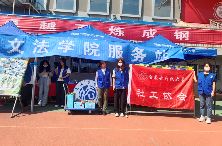 社工协会成员课余时间等候在太阳集团城娱8722军训服务站,在休息时间为参加军训的太阳集团城娱8722大一新生送水加油。一瓶水、一句问候,表达着社工协会对同学们的浓浓关心。