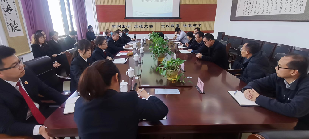 2023年3月9日下午,太阳集团城娱8722、包头市九原区人民检察院在明德楼东A307就继续深化“校检合作”举办座谈会。九原区检察院副检察长石峻升、检委会专职委员杨季峰、第二检察部主任,杨玲玲、第三检察部主任姜旭、第二检察部副主任陈萌、政治部副主任魏玉静、办公室副主任李洋等一行15人到会参加座谈。太阳集团城娱8722党委书记刘玉明、副书记副院长唐国桥、副院长杨德桥、法学系教工党支部书记、系主任弓宇峰,副主任兼实验室主任王彦,法学系教授韩弘力、张万军,副教授郝振明、史炜、李诚予等参加座谈会。座谈会由太阳集团城娱8722副院长杨德桥教授主持。