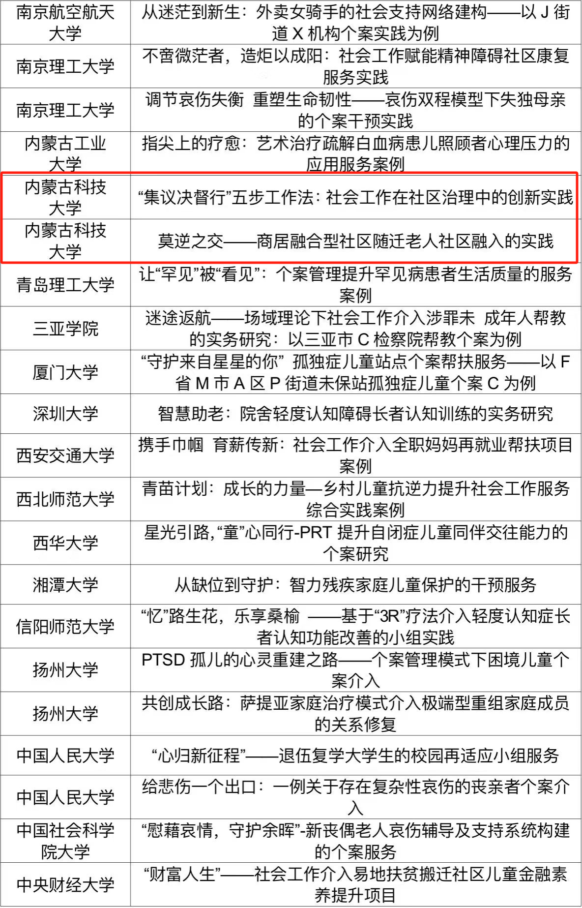 第四届“全国MSW研究生案例大赛”四十强案例名单
