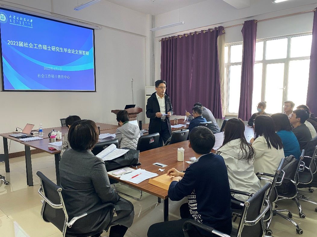 为全面落实提升研究生培养质量、强化过程管理的培养理念,4月1日,社会工作硕士教育中心开展2023届社会工作专业硕士研究生学位论文预答辩工作。本次预答辩共分3个答辩组,由校内外的专家学者担任答辩评委,对2023届社会工作专业硕士研究生的学位论文进行线下答辩。