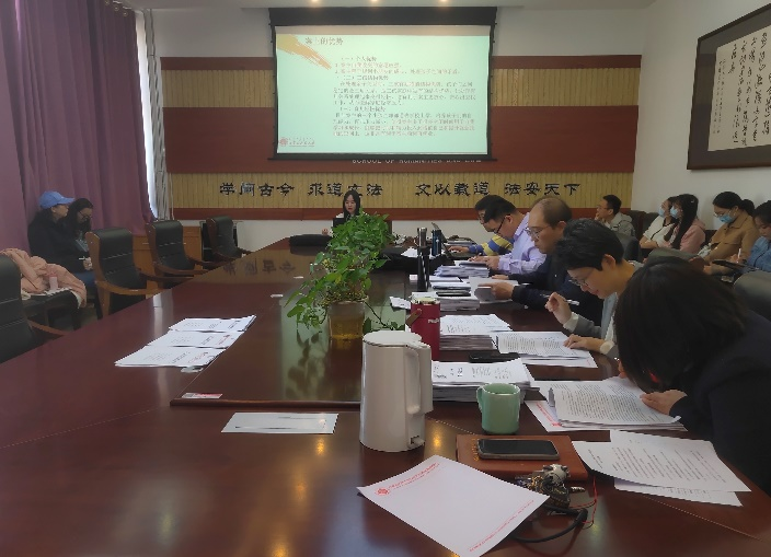 预答辩开始前,各组答辩委员会主席就学位论文答辩评价标准和答辩流程做了简短的介绍。之后,参与答辩的研究生认真介绍了学位论文的选题意义、研究方法、主要内容、创新性成果、结论与反思等。答辩评委老师以严谨的治学态度和学术标准认真提问、点评,并针对每位研究生的毕业论文提出了详尽中肯的修改意见和完善建议,充分展现了老师们严谨的治学风范和教书育人的殷切之情,使参加答辩的硕士生们受益匪浅。研究生与评委老师充分交流,认真记录,重新思考,积极回应。整个答辩环节,时间安排合理紧凑、气氛张弛有度。