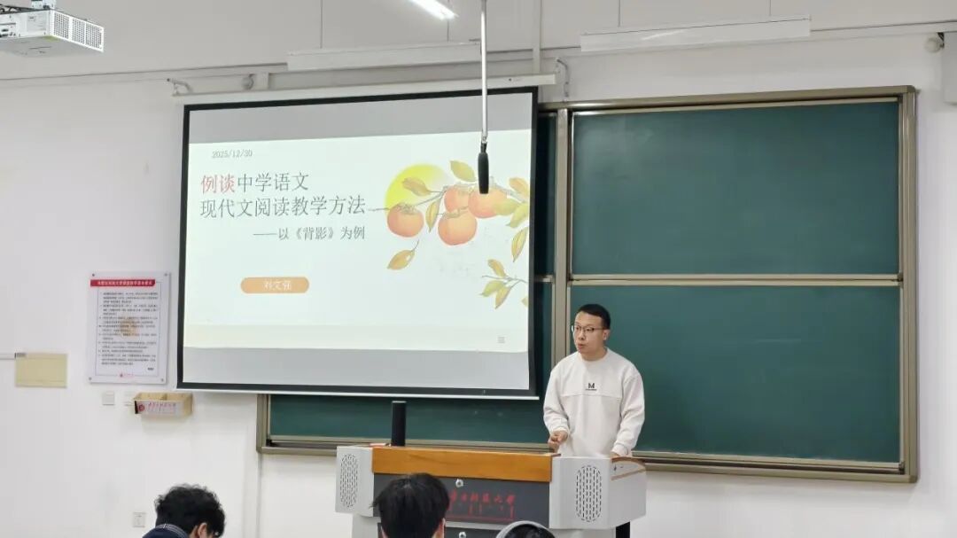 刘文强老师以经典篇目《背影》为切入点,分享了现代文阅读教学的相关思考。他从课例分析、文本解读等维度,解析了如何引导学生深入理解文本内涵,掌握现代文阅读的核心技巧,为在场学生提供了可借鉴的现代文教学实践思路。