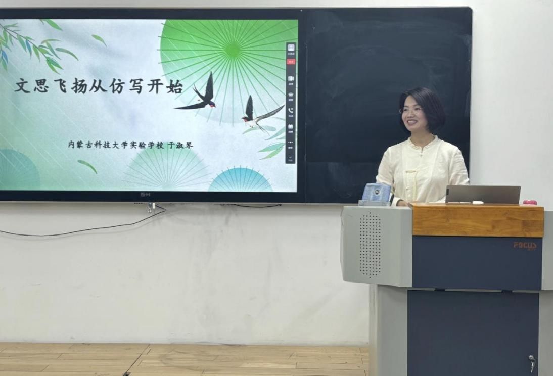 于淑琴围绕“认识仿写”“仿写特点”“仿写注意事项”及“素材积累方法”四大问题展开讲座,系统解析仿写教学的核心问题和有效路径。她指出:“仿写并非机械复制,而是对优秀文本结构、语言风格和表现手法的创造性借鉴,是学生突破写作瓶颈的关键路径。”