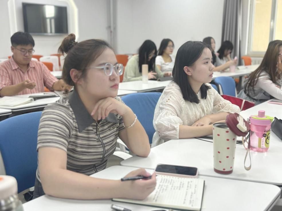 互动环节中,研究生们围绕“仿写与创新的平衡”“如何激发学生写作兴趣”等问题踊跃提问。于淑琴结合一线教学经验逐一解答,并提出“以评促改、以改促优”的反馈机制,令在场师生深受启发。导师团队亦就“新课标下的写作教学改革”与主讲人展开深度探讨,现场学术氛围热烈。